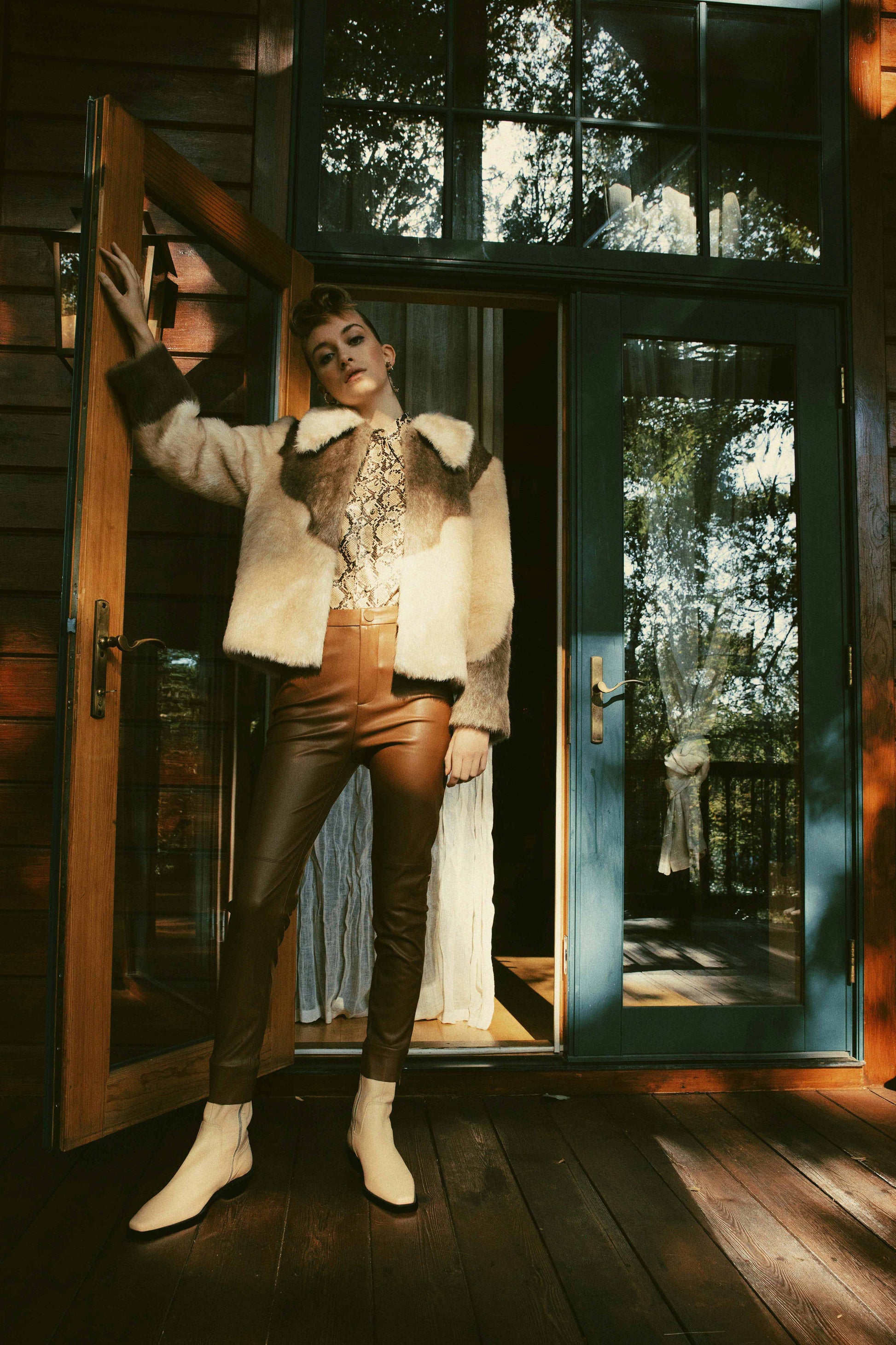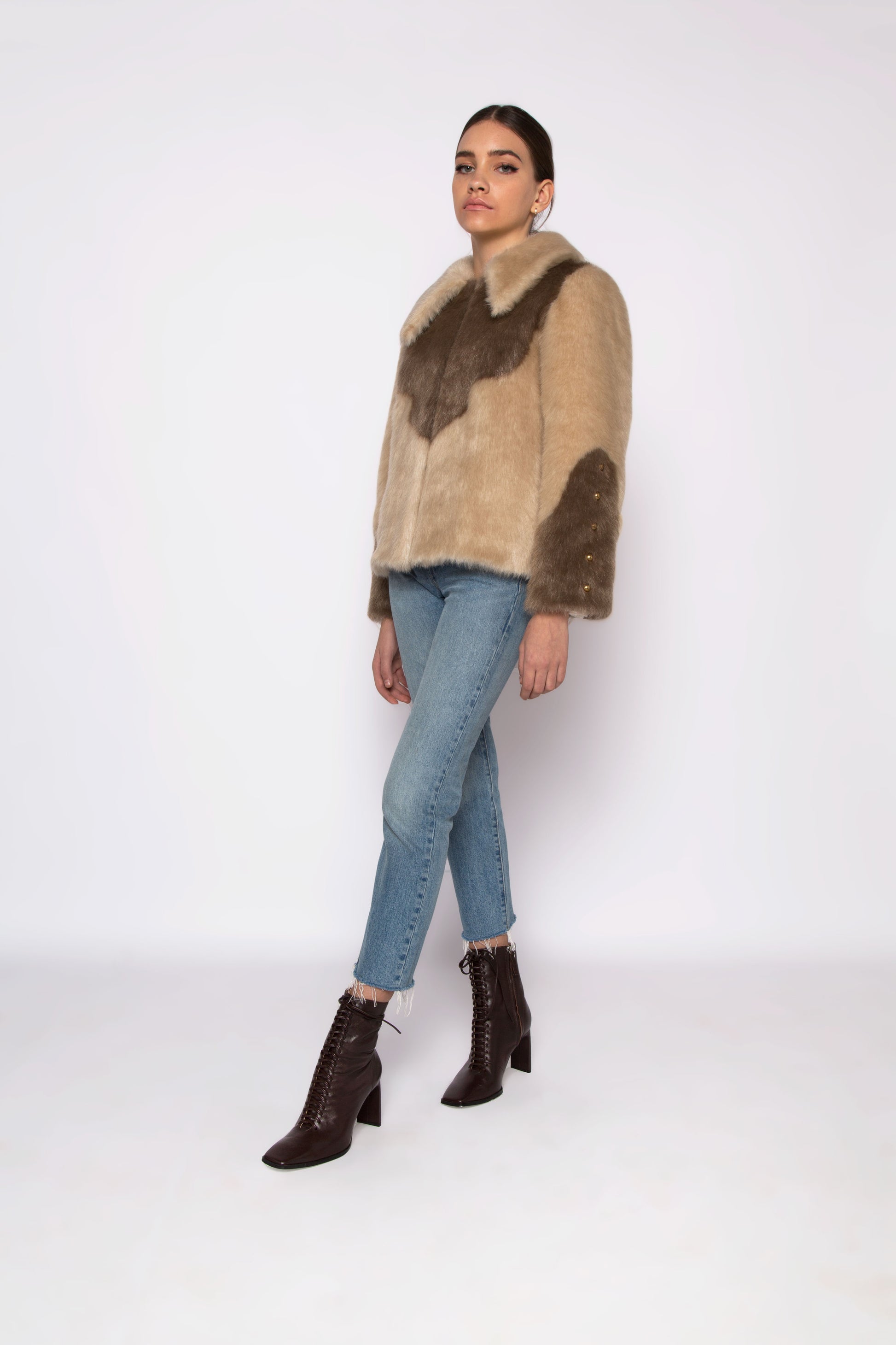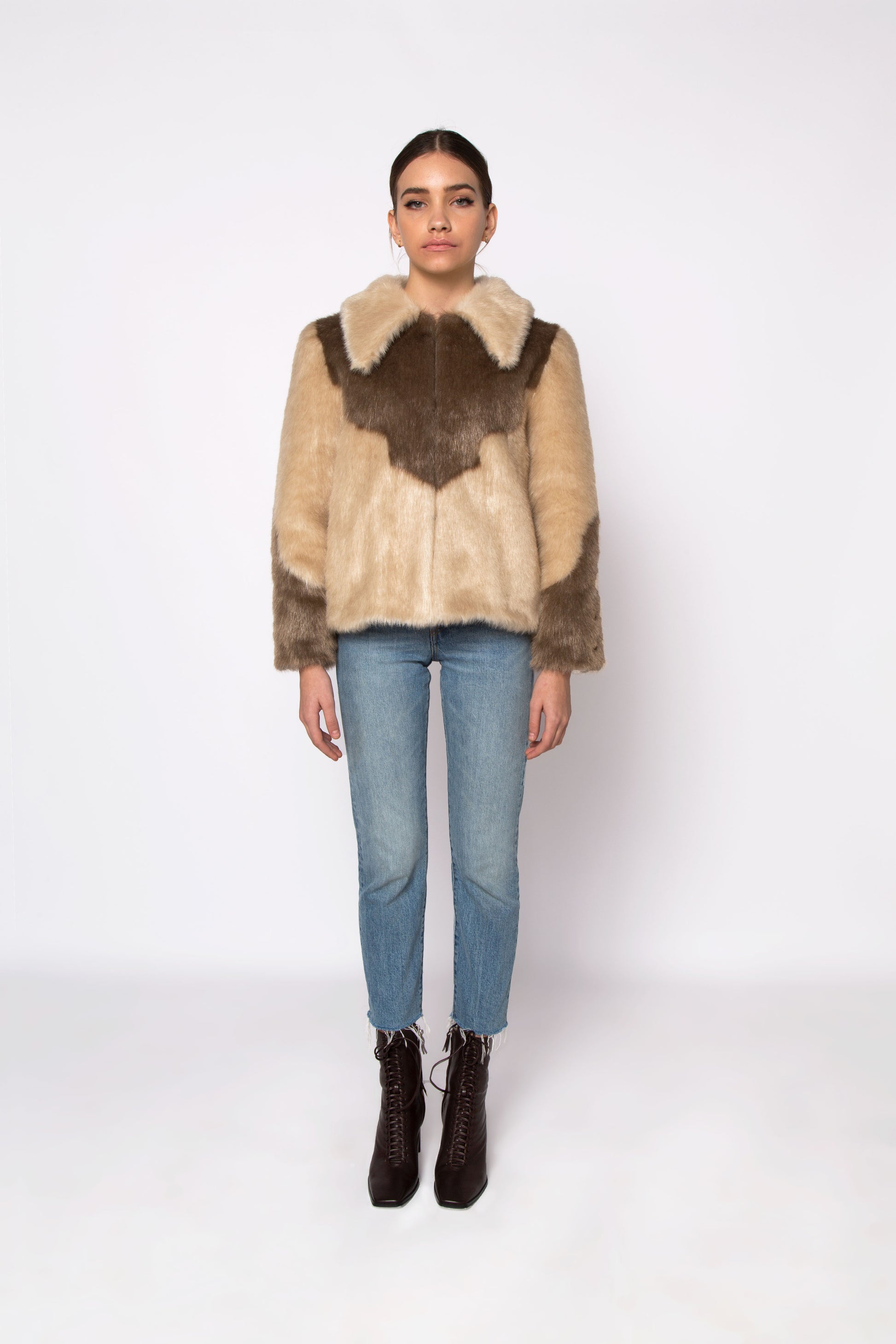 Regular fit faux fur jacket in beige and taupe