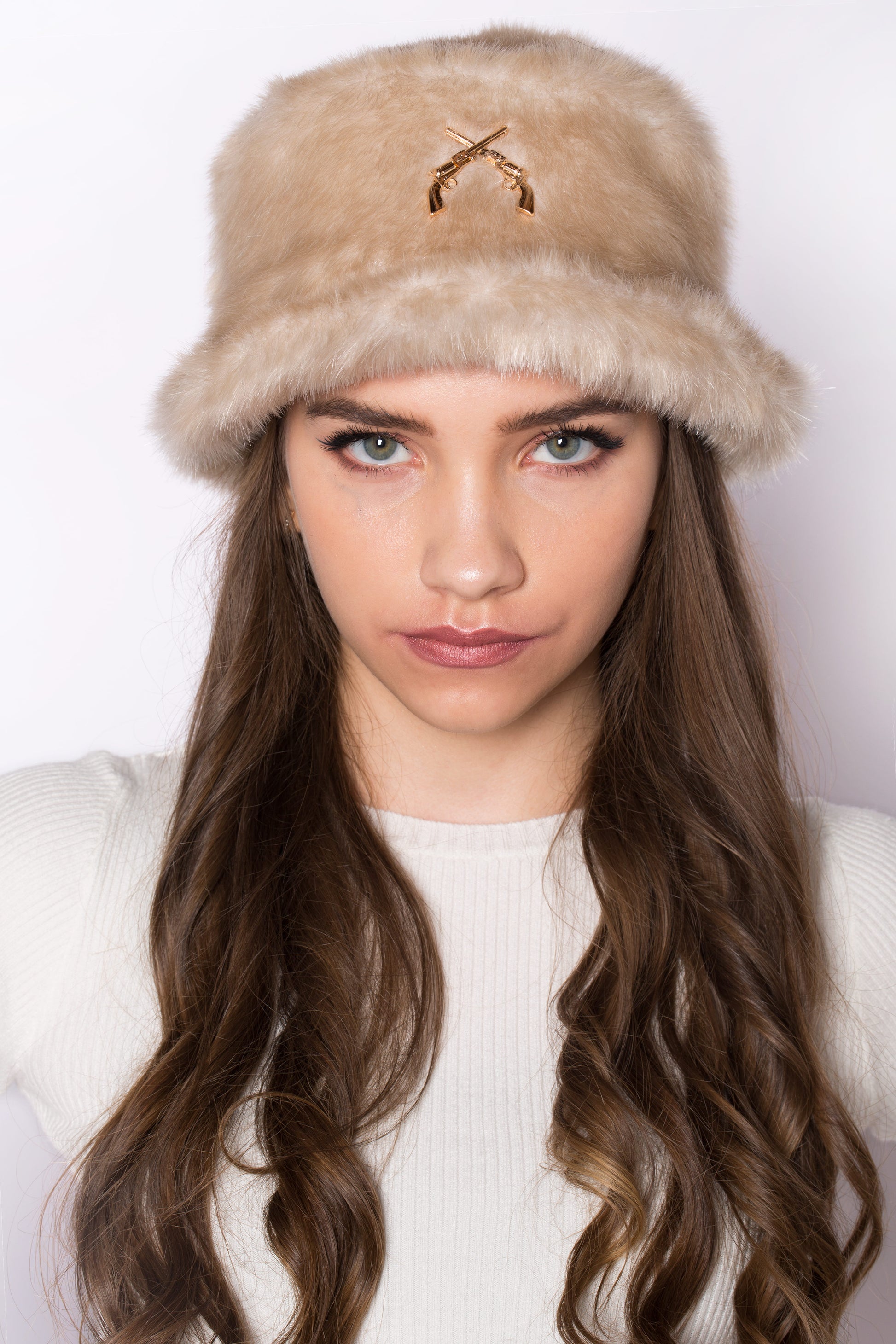 Faux fur hat in beige